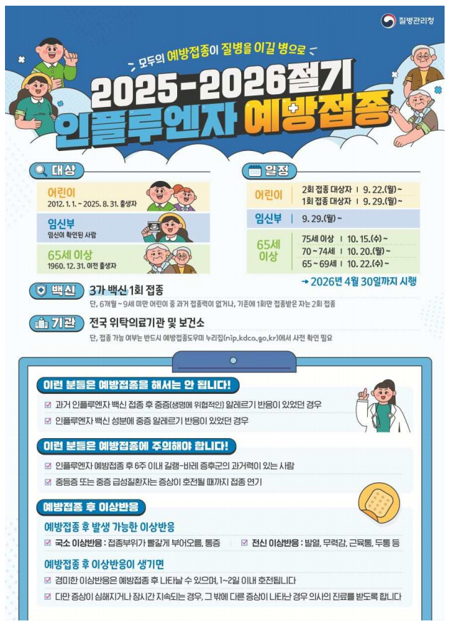 인플루엔자로부터 우리 모두를 지키기 위해 예방접종 서둘러 주세요!!
