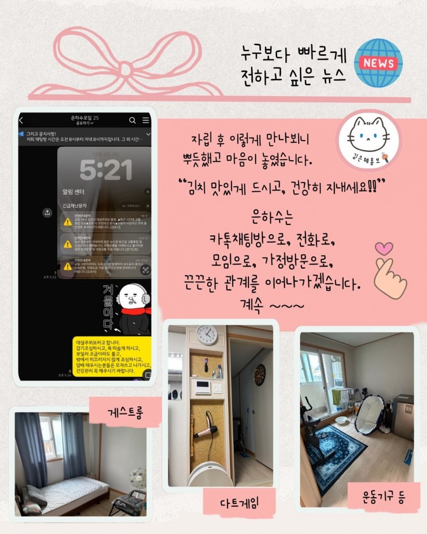 앞으로도 카톡채팅방으로, 전화로, 모임으로, 가정방문으로, 끈끈한 관계를 지속해서 이어나가겠습니다.