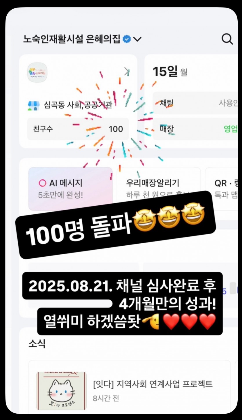 2025.08.21. 카카오채널 심사 후 4개월만의 성과.